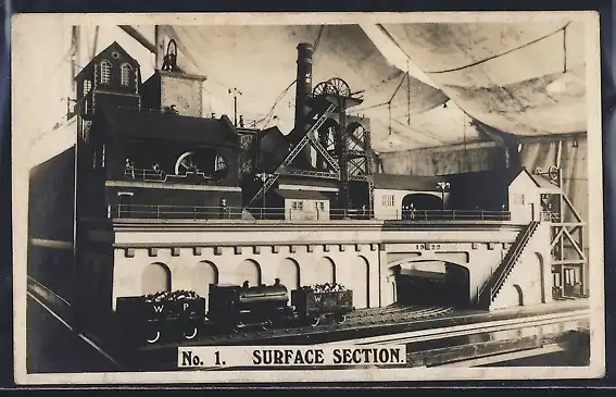 AK Modell-Eisenbahn vor einem Modell-Bergwerk