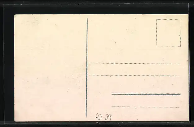 Personenbezogene Daten auf der Rückseite der Karte wurden durch blauen Textmarker unkenntlich gemacht. Die blauen Stellen sind auf die Vorderseite durchgeweicht und wirken sich negativ auf das Postkartenfoto aus