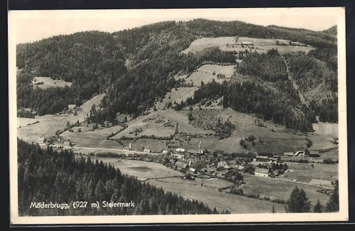AK Möderbrugg /Steiermark, Teilansicht mit Wäldern