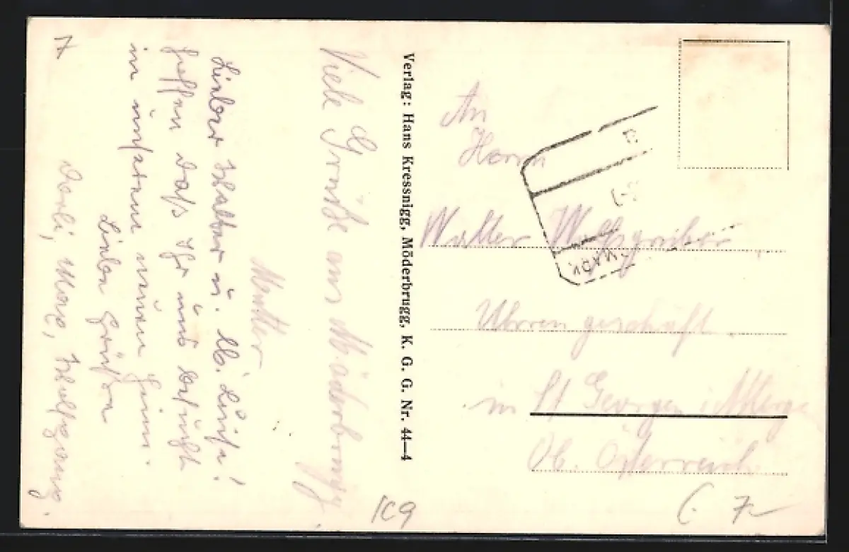 alte Ansichtskarte, gelaufen, Briefmarke entfernt, guter Zustand