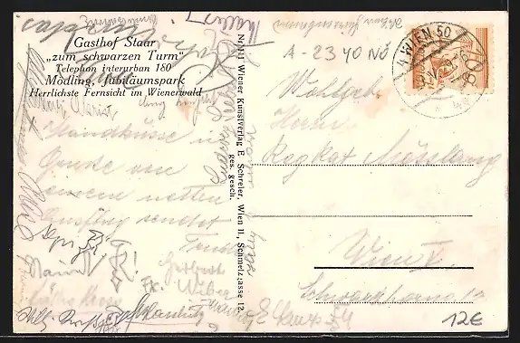 AK Mödling, Gasthof Staar zum schwarzen Turm im Jubiläumspark