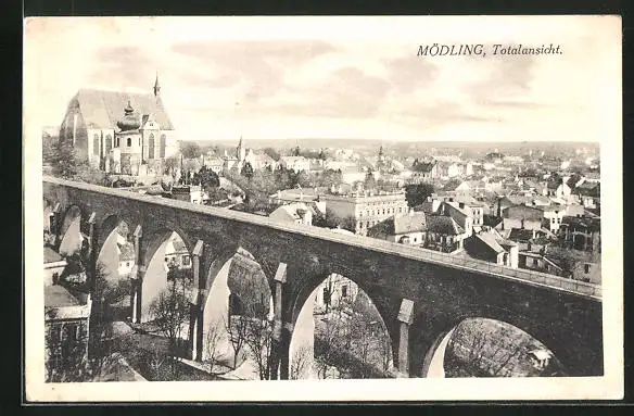 AK Mödlingen, Totalansicht mit Kirche und Viadukt
