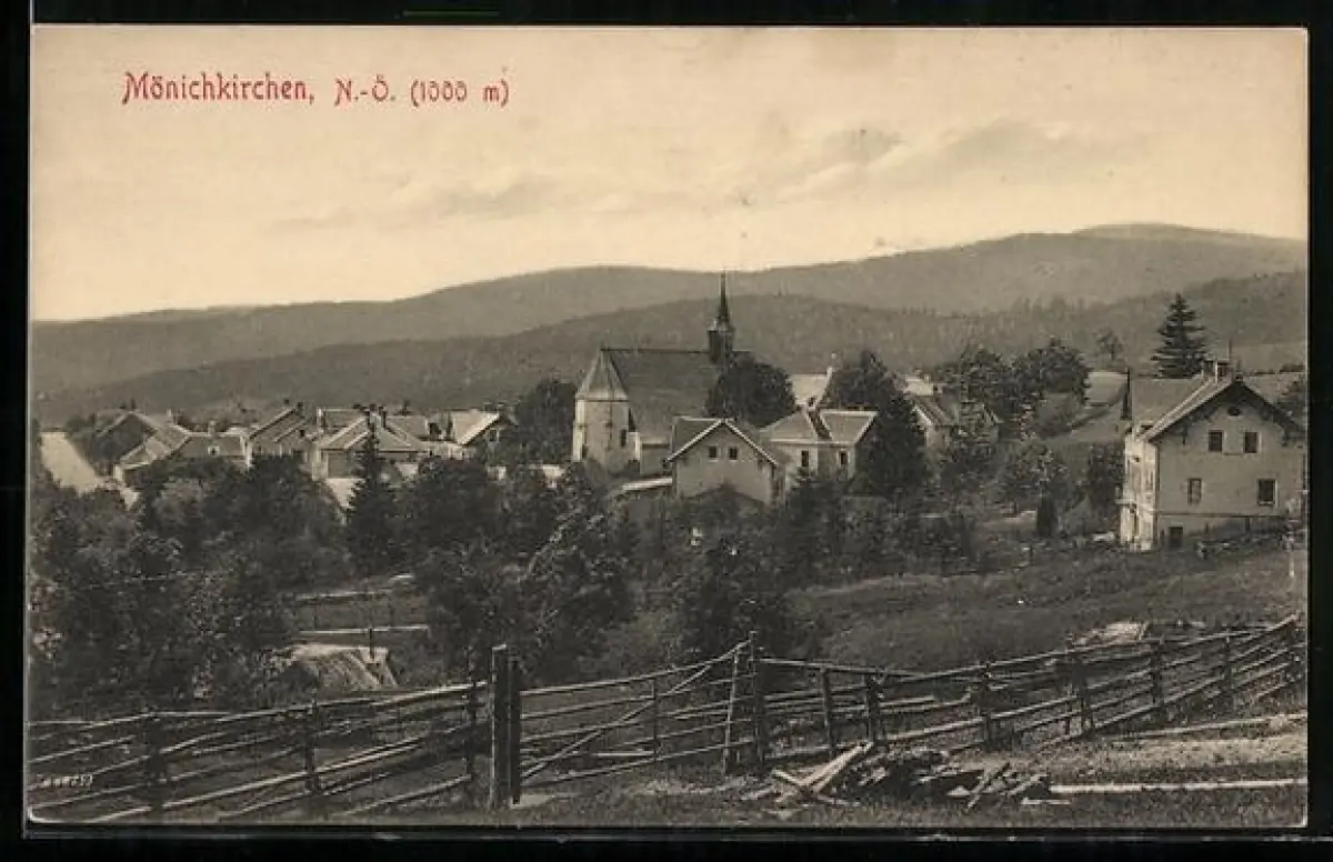 AK Mönichkirchen /N.-Ö., Ortspanorama mit Kirche