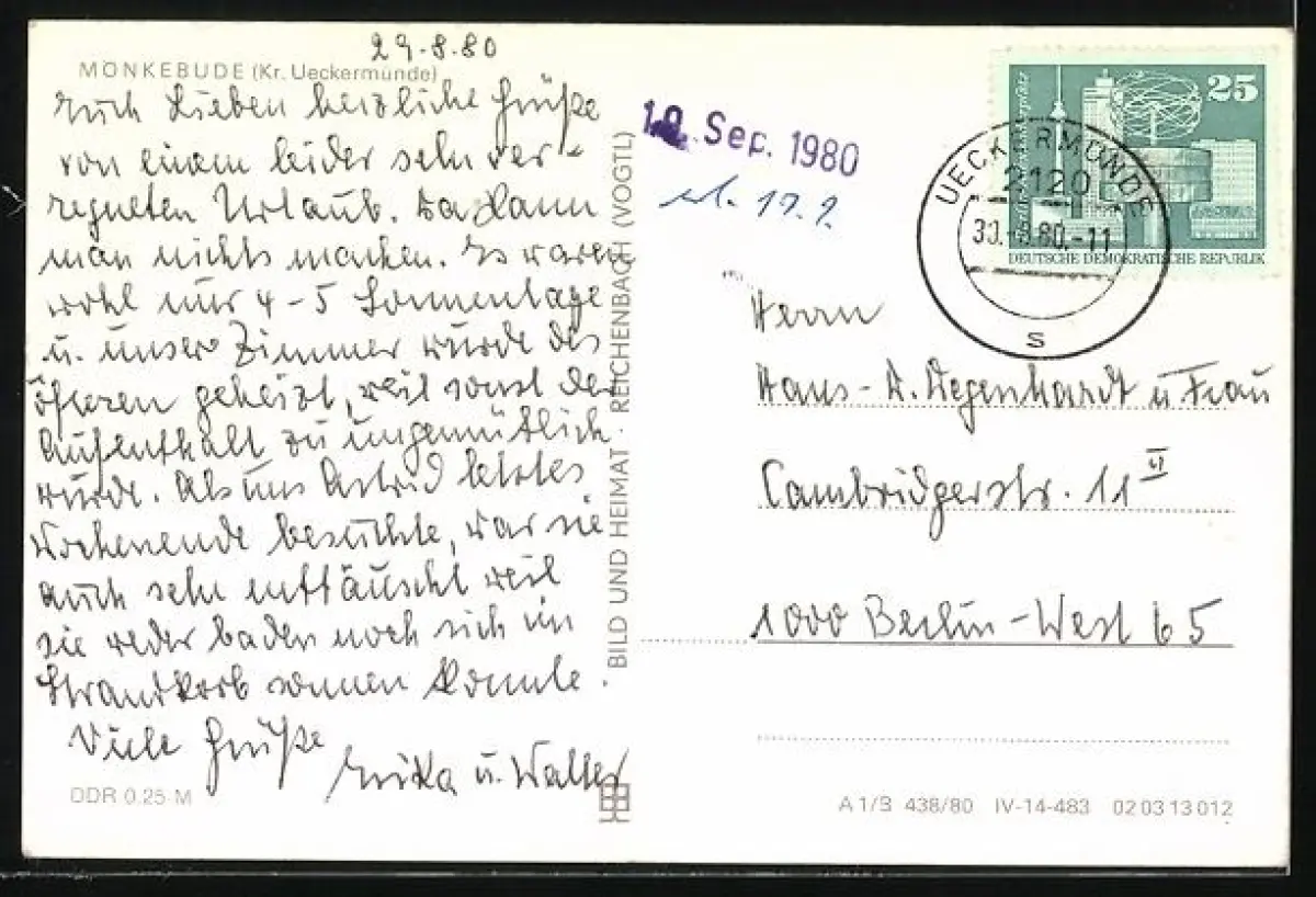 alte Ansichtskarte, gelaufen 1980, guter Zustand