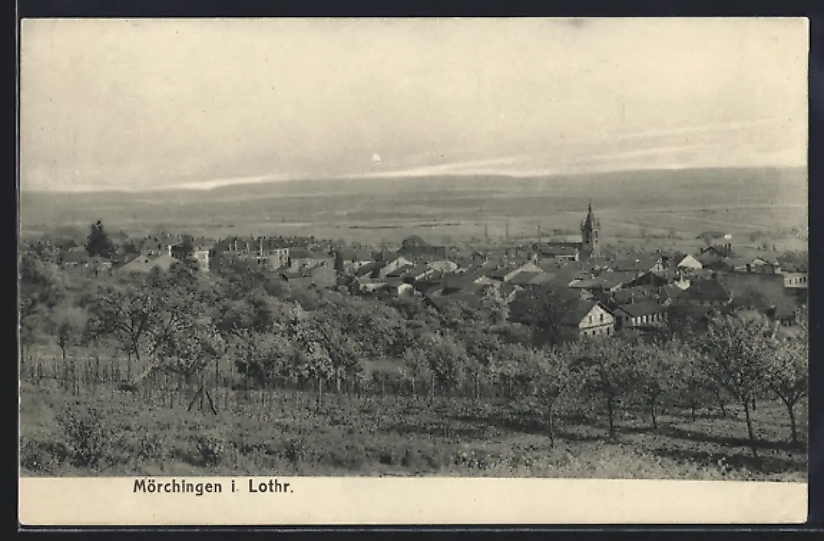 AK Mörchingen i. Lothr., Vue sur la ville avec vergers au premier plan