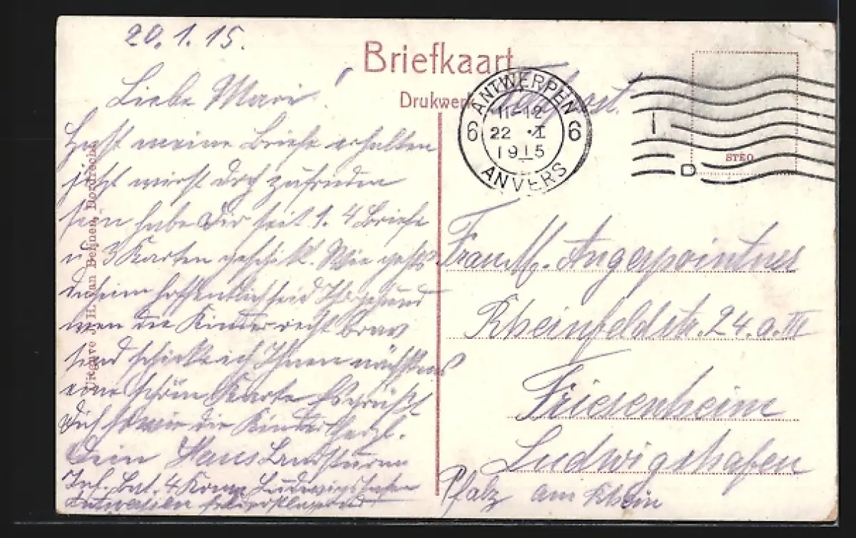 alte Ansichtskarte, gelaufen 1915, Stempelspur, Eckknick li. oben, guter Zustand
