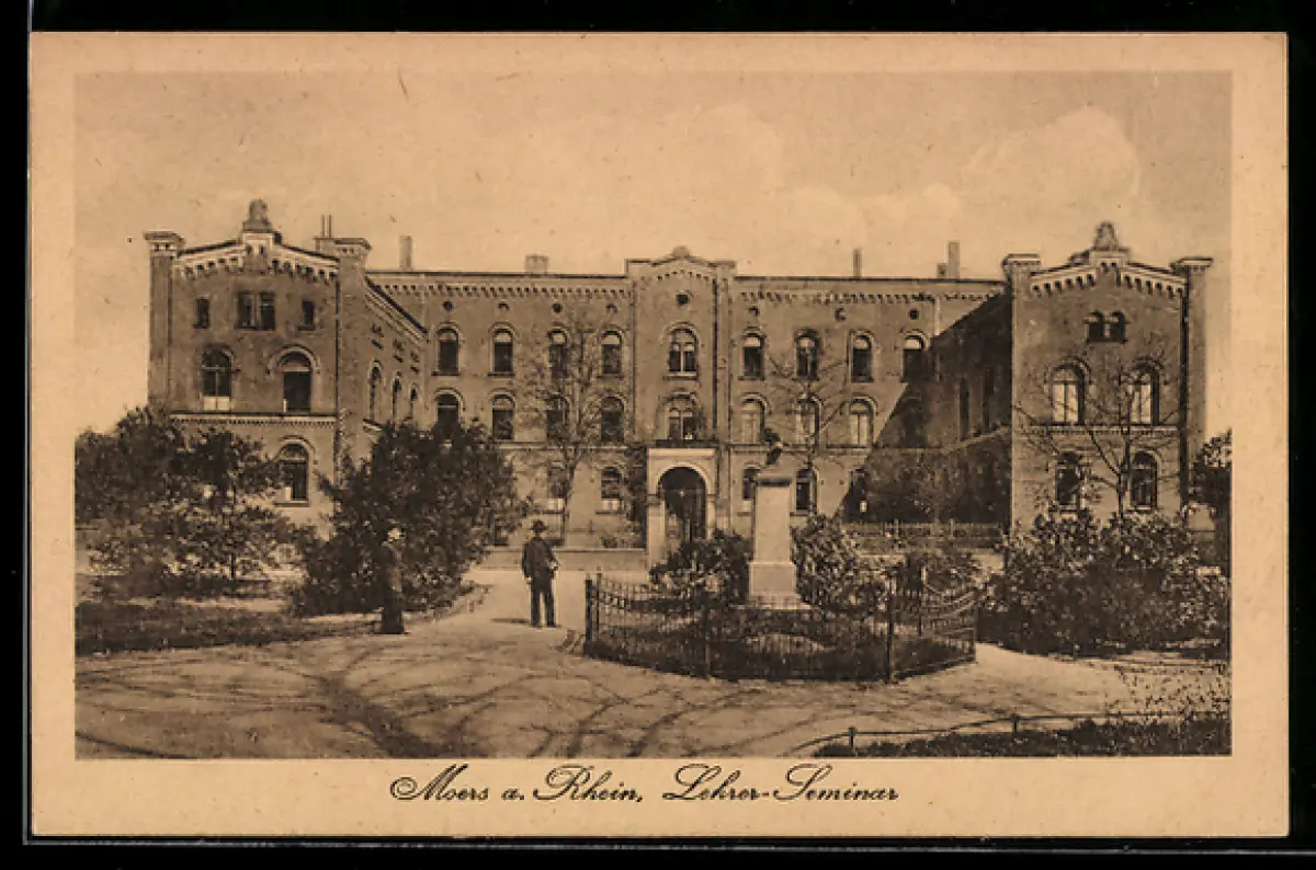 AK Moers a. Rhein, Lehrer-Seminar mit Denkmal