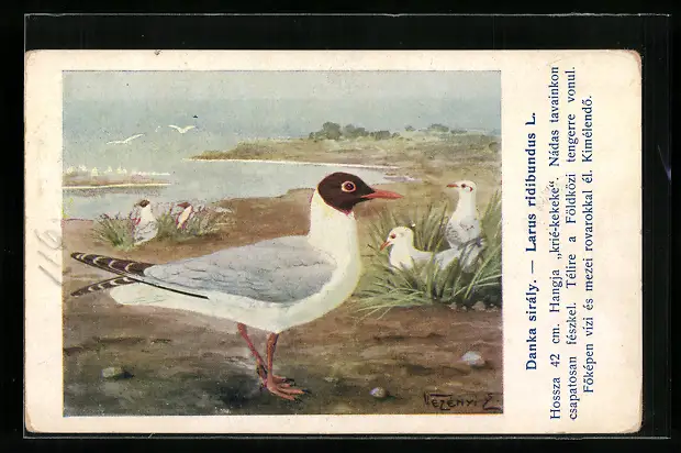 AK Möwe Larus ridibundus L. an einem Gewässser