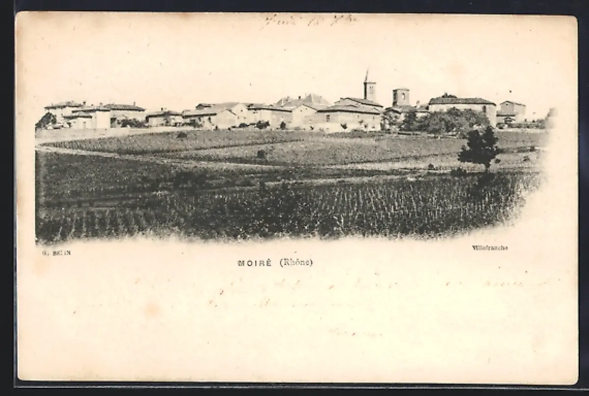 AK Moiré /Rhône, Vue du village et des champs environnants