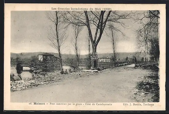 AK Moissac, Hochwasser von 1930, Pont construit par le genie - Coté de Castelsarrasin