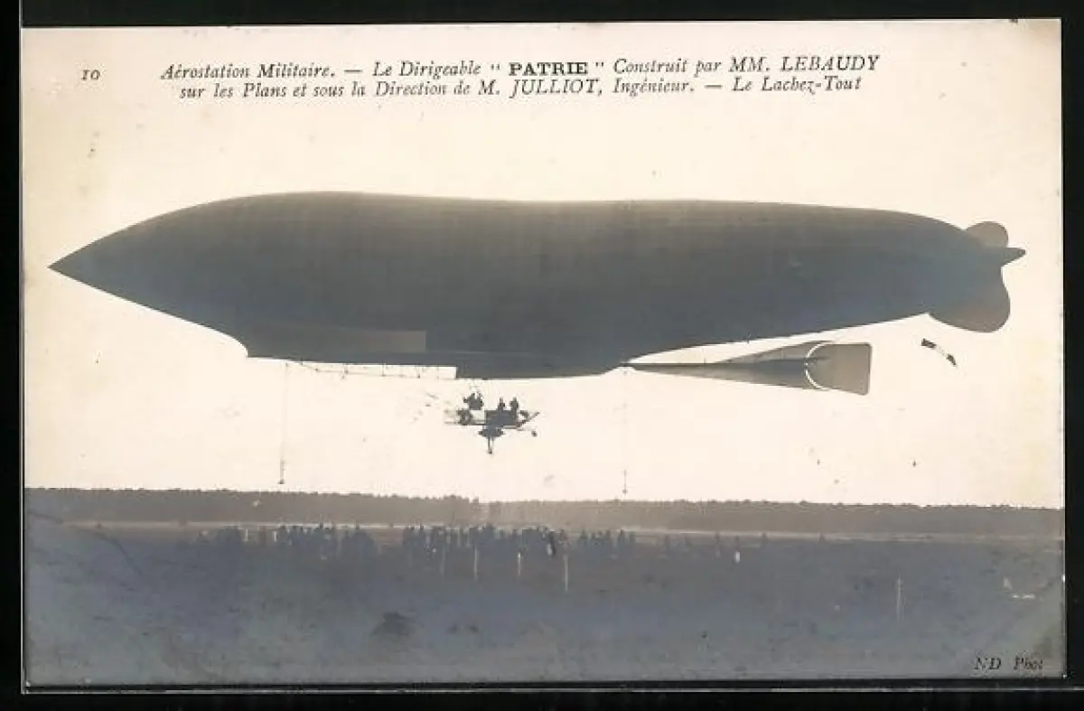 AK Moisson, Le Ballon Militaire Patrie, Zeppelin beim Starten der Fahrt