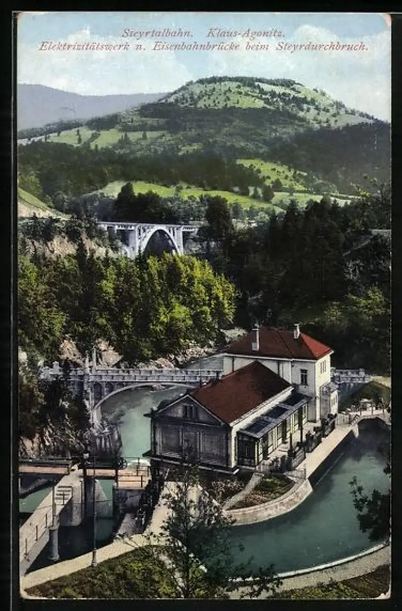 AK Molln /O.-Oe., Elektrizitätswerk Agonitz und Eisenbahnbrücke beim Steyrdurchbruch