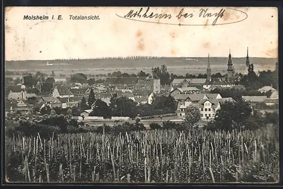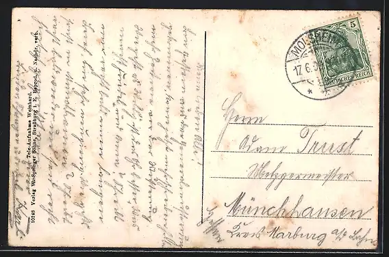 alte Ansichtskarte, gelaufen 1909, Stecknadellöcher oben, Bugspur re. oben, guter Zustand