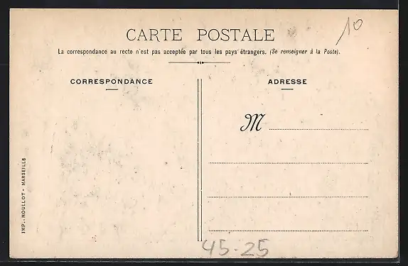 Personenbezogene Daten auf der Rückseite der Karte wurden durch blauen Textmarker unkenntlich gemacht. Die blauen Stellen sind auf die Vorderseite durchgeweicht und wirken sich negativ auf das Postkartenfoto aus