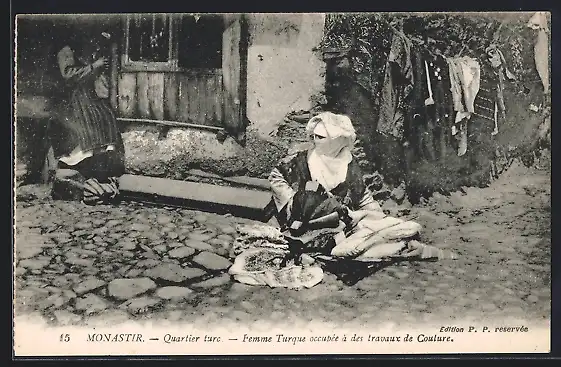 AK Monastir, Quartier turc-Femme Turque occupèe à des travaux de Coulure