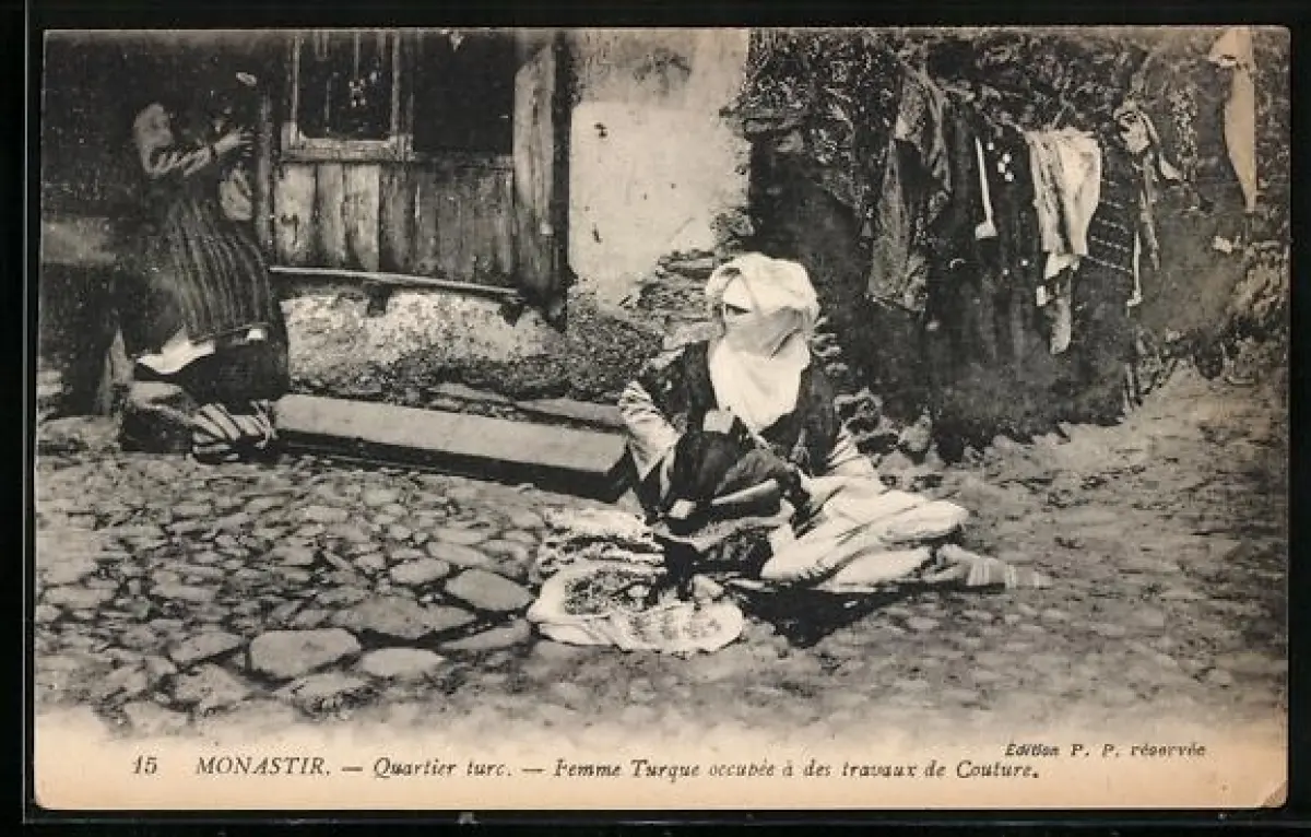 AK Monastir, Quartier turc-Femme Turque occupèe à des travaux de Coulure