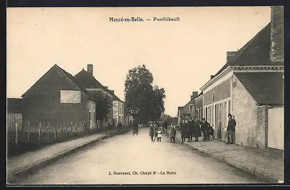 AK Moncé-en-Belin, Rue animée de Ponthibault avec habitants et maisons anciennes