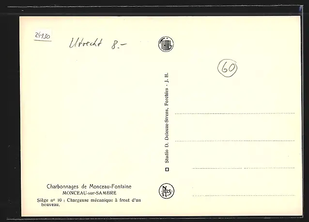 AK Monceau-sur-Sambre, Charbonnages de Monceau-Fontaine, siège no. 10, Chargeuse mécanique à front d`un bouveau