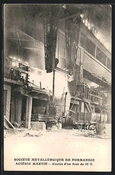 AK Mondeville, Société Métallurgique de Normandie Aciérie Martin, Coulée d`un four de 35 T.