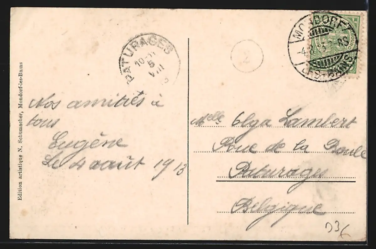 alte Ansichtskarte, gelaufen 1913, Eckknick oben re., guter Zustand