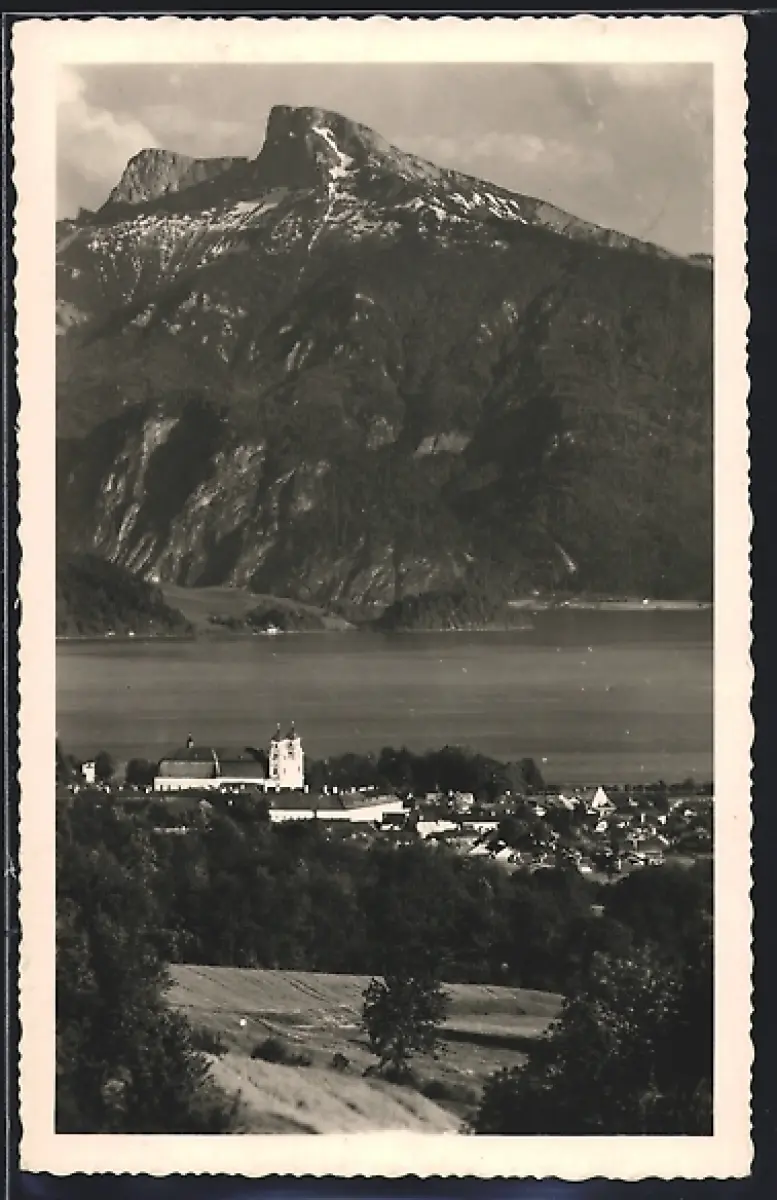 AK Mondsee, Teilansicht mit Schafberg