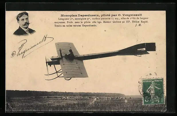 AK Monoplan Deperdussin, piloté par O. Vergnieault, Eindecker-Flugzeug