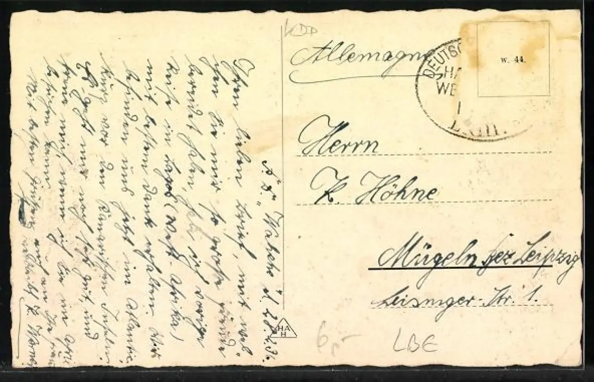 alte Ansichtskarte, gelaufen 1936, Briefmarke entfernt, Eckknick unten li., Stempelspur, guter Zustand