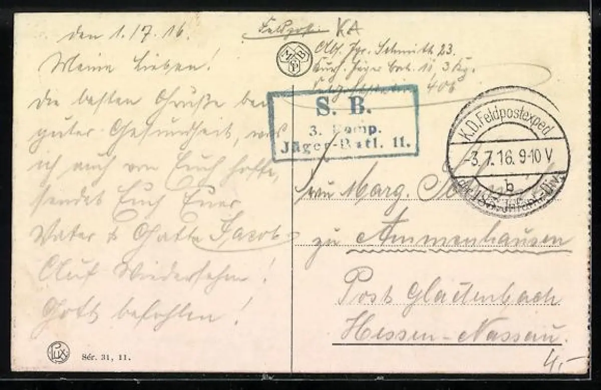 alte Ansichtskarte, gelaufen 1916, Stempelspur, guter Zustand