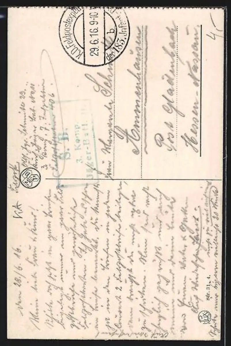 alte Ansichtskarte, gelaufen 1916, Eckknick re. oben, guter Zustand