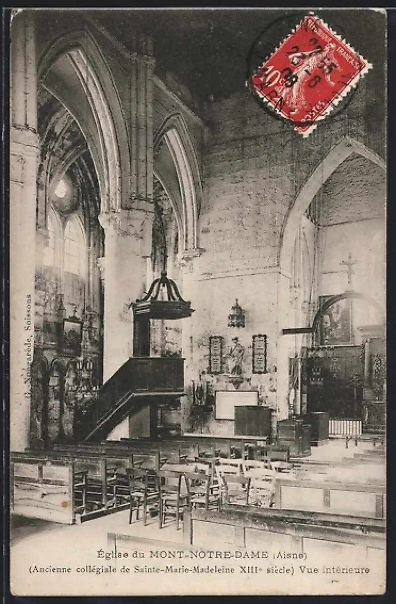 AK Mont-Notre-Dame /Aisne, Église du Mont-Notre-Dame, Vue intérieure