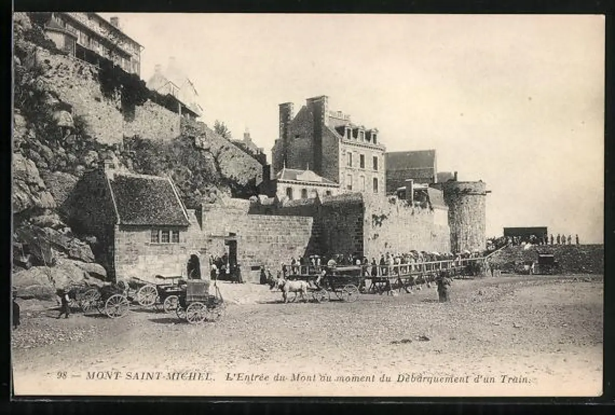 AK Mont-Saint-Michel, L`Entrée du Mont au moment du Débarquement d`un Train