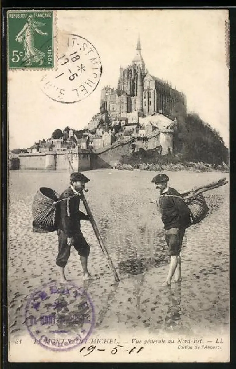 AK Mont-Saint-Michel, Vue générale au Nord-Est avec pêcheurs sur le sable