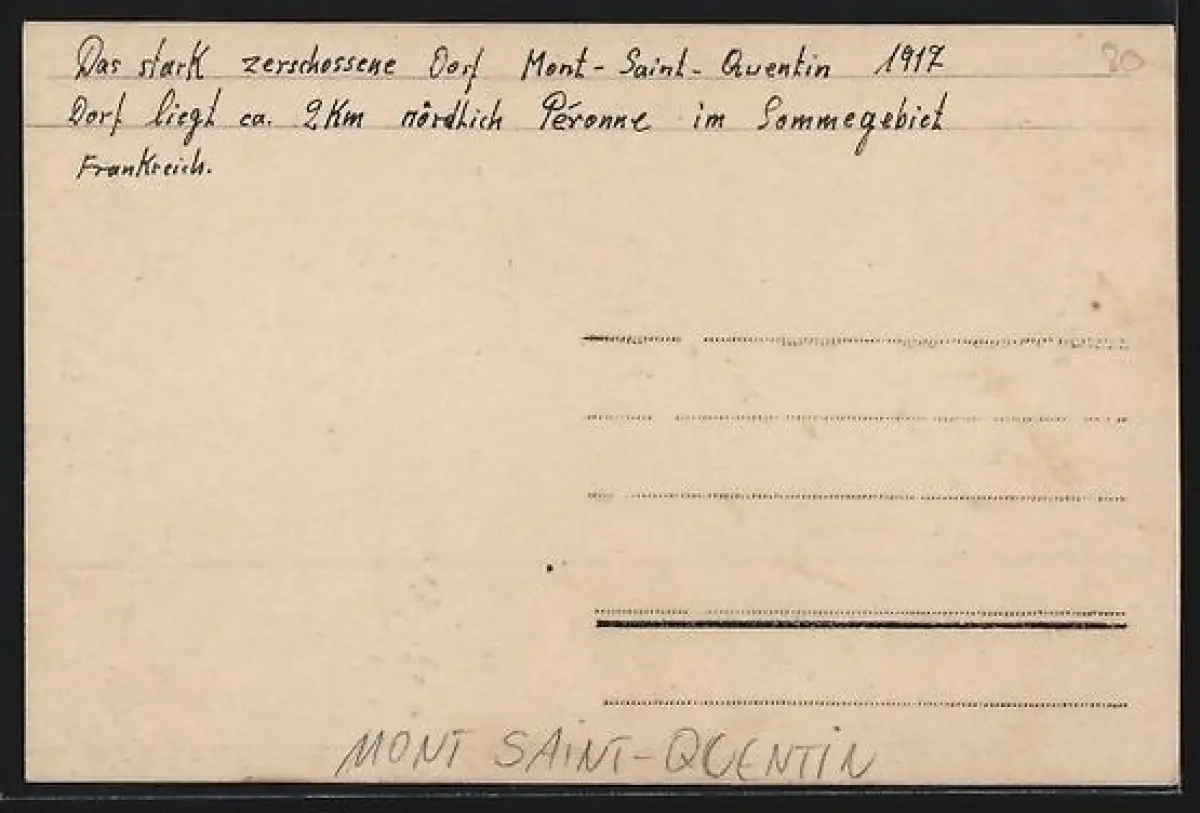 AK Mont-Saint-Quentin, Village dévasté après les destructions de 1917