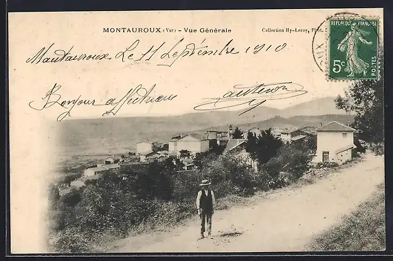 AK Montauroux, Vue Générale du village avec un homme sur le chemin