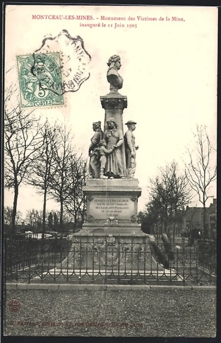 AK Montceau-les-Mines, Monument des Victimes de la Mine, inauguré le 11. Juin 1905