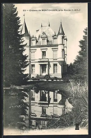 AK Montchenin, Château près d`Esvres avec son reflet dans l`eau