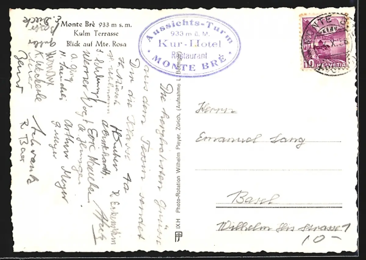 AK Monte Brè, Kulm-Terrassencafe mit Blick auf Mte. Rosa