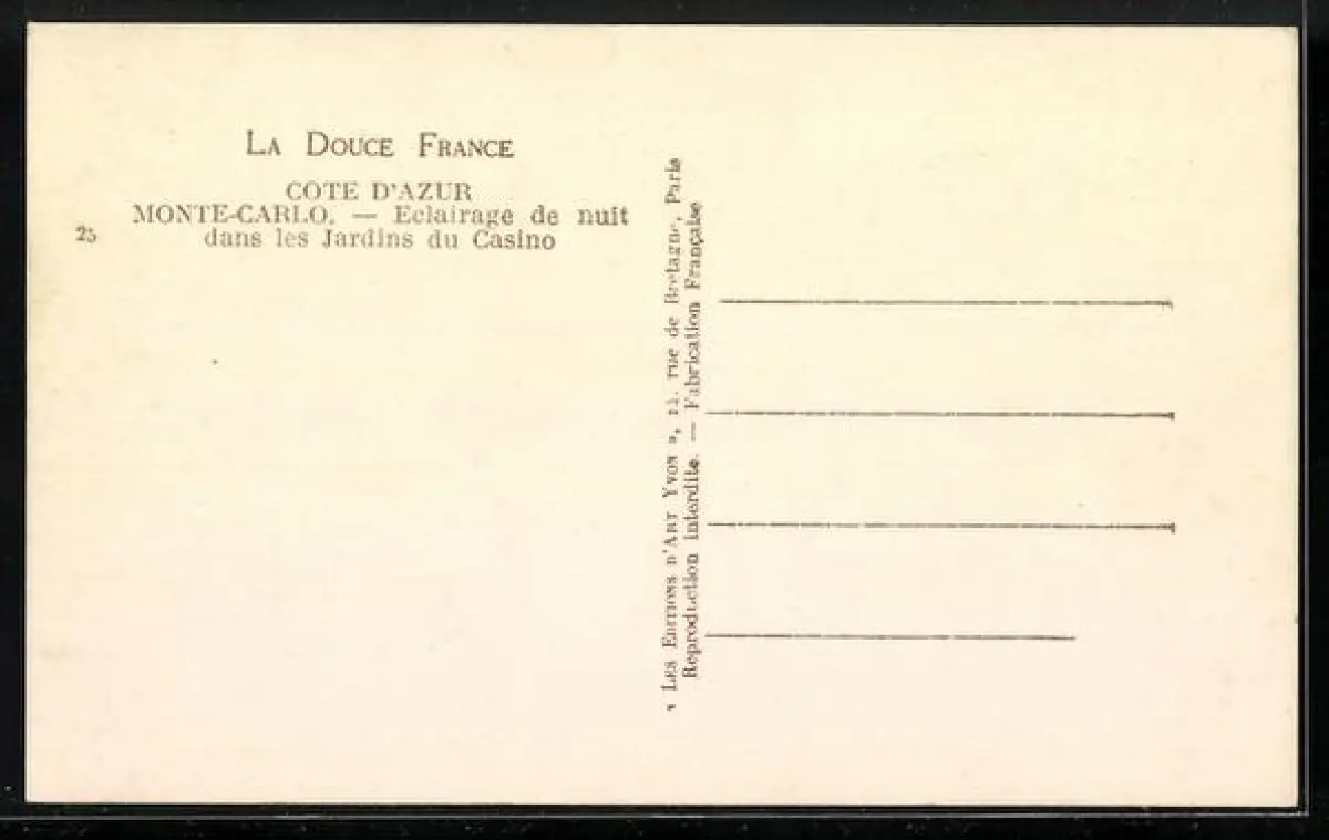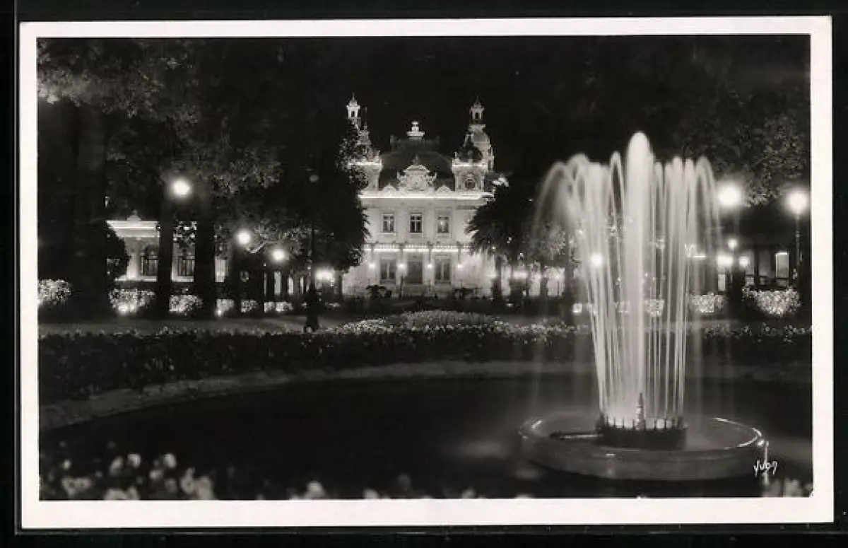 AK Monte-Carlo /Cote D`Azur, Eclairage de nuit dans les Jardins du Casino