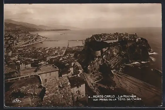 AK Monte-Carlo, Le Rocher vue prise de la Tete de Chien