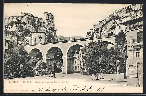 AK Monte Carlo, Ravin et l`Église Sainte Dévôte