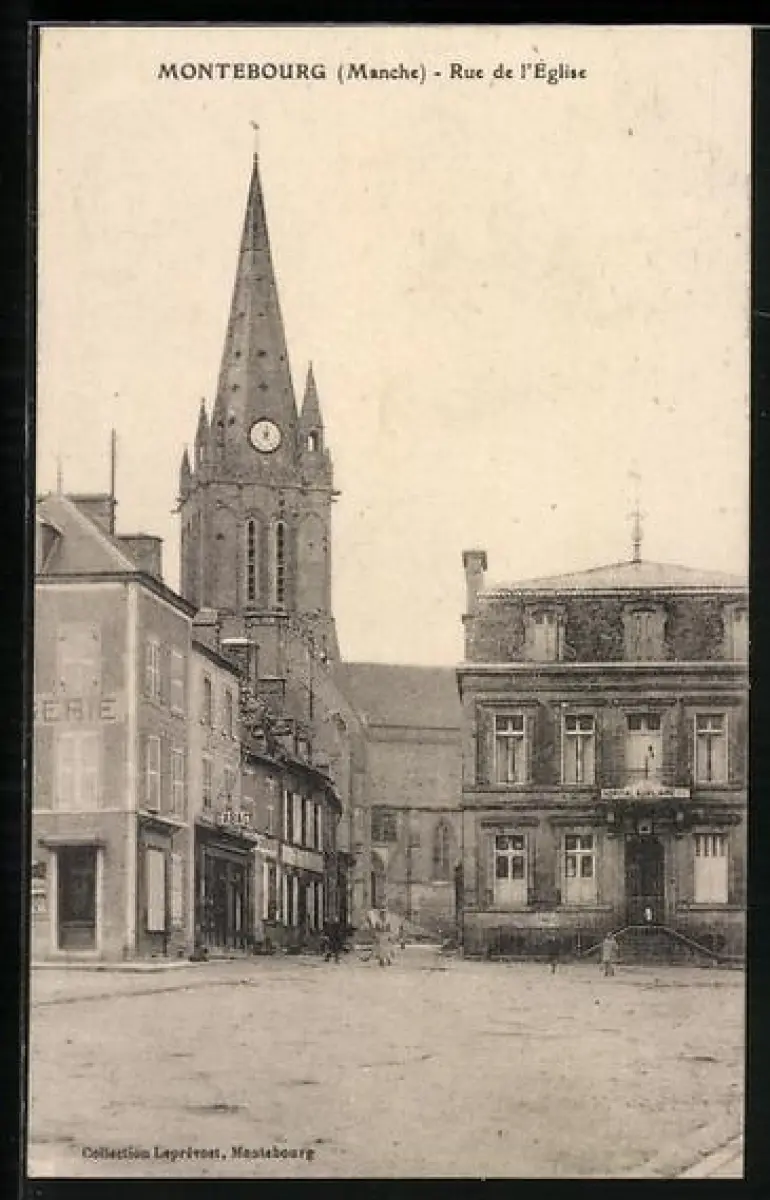 AK Montebourg /Manche, Rue de l`Église avec vue sur le clocher et les bâtiments environnants