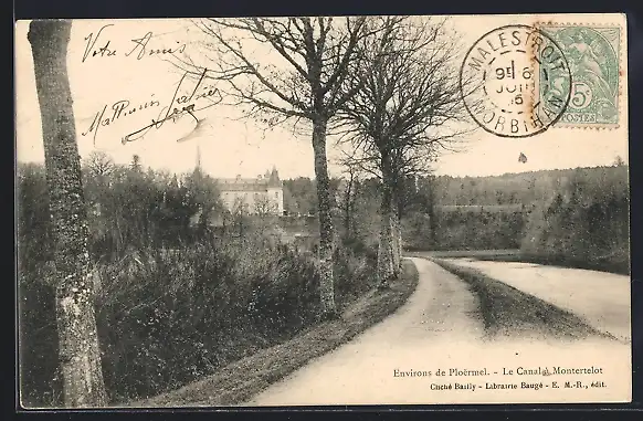 AK Montertelot, Le Canal et chemin bordé d`arbres