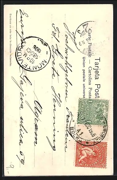 alte Ansichtskarte, gelaufen 1906, Stempelspur, guter Zustand