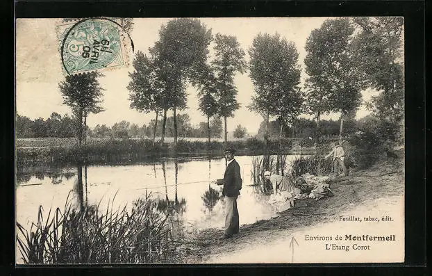 AK Montfermeil, L`Etang Corot, Mann beim Angeln