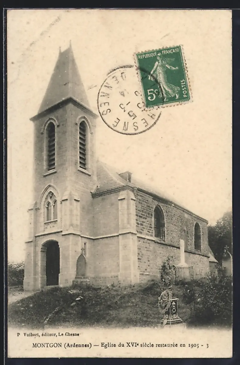 AK Montgon /Ardennes, Église du XVIe siècle restaurée en 1905