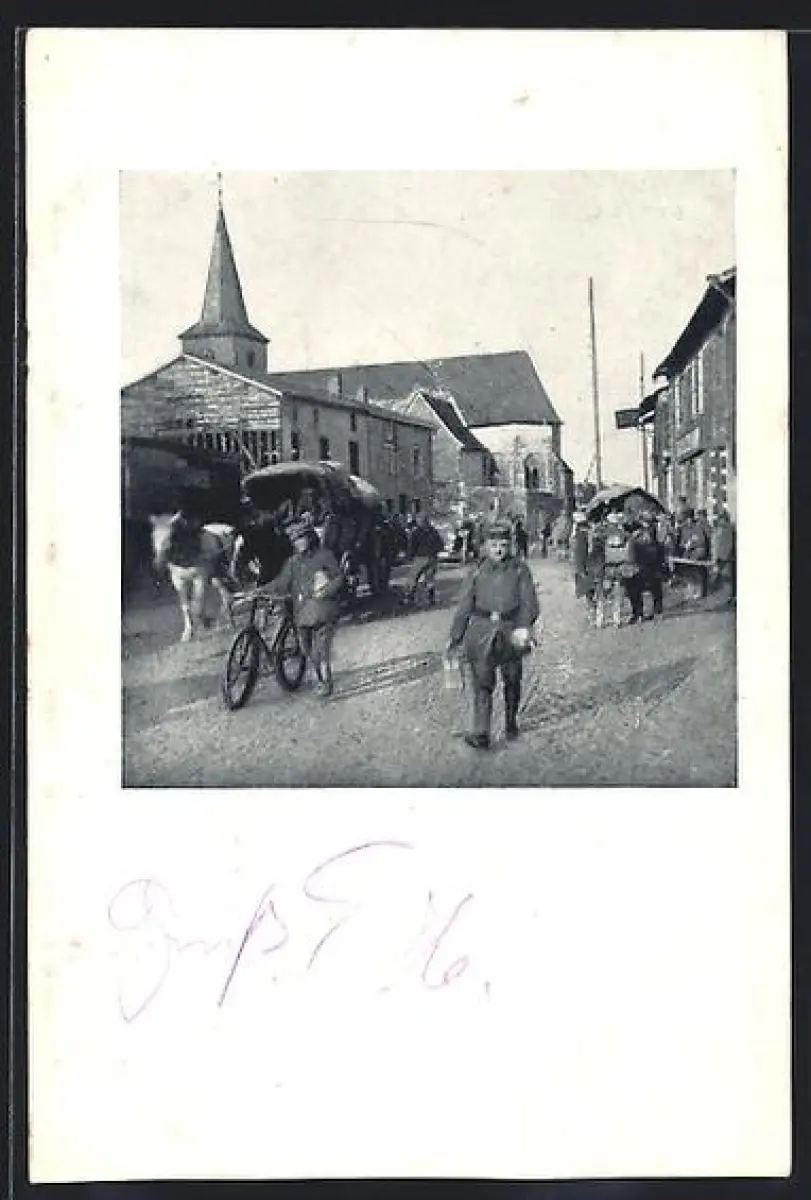 AK Monthois, Strassenpartie mit Soldaten