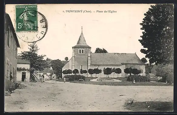 AK Montigny, Place de l`Église avec vue sur l`église et la place centrale