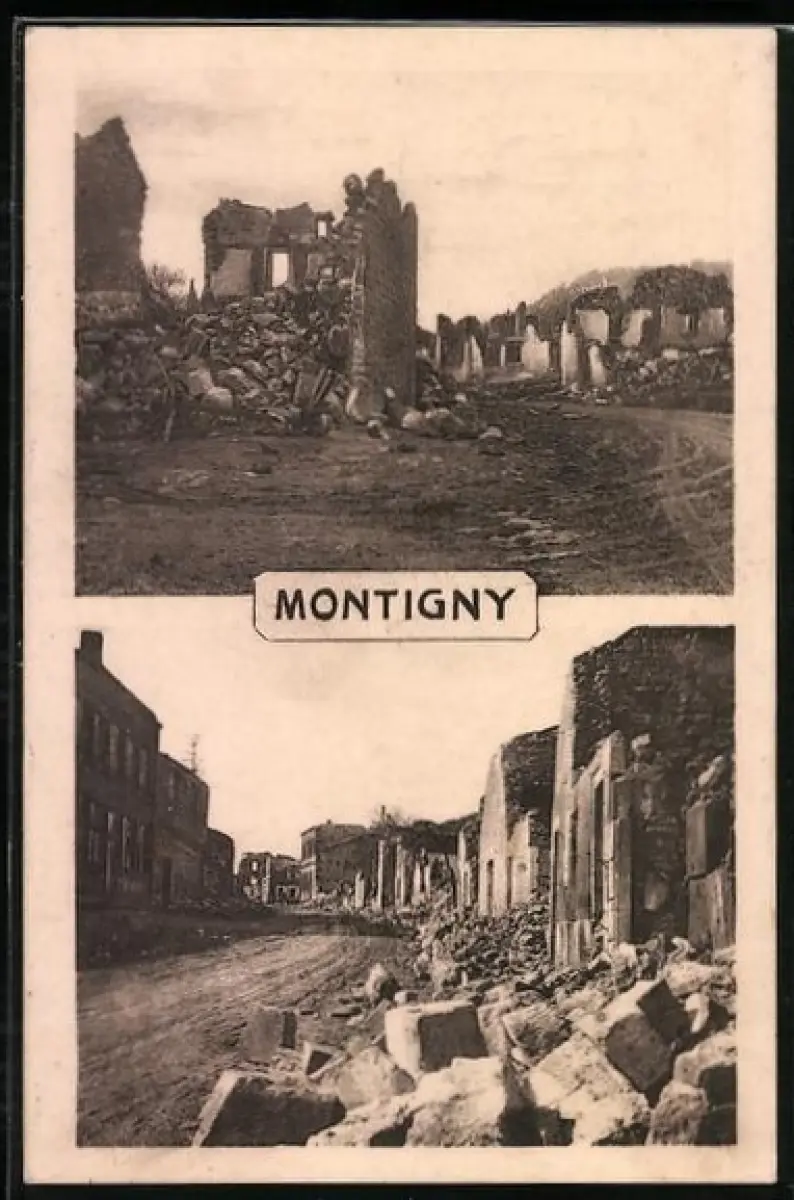 AK Montigny, Ruines des bâtiments après la destruction
