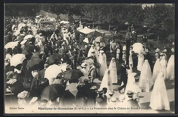 AK Montigny-le-Gannelon, La Procession avec la Châsse de Sainte Félicité