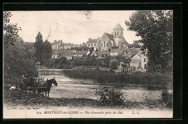 AK Montigny-sur-Loing, Vue d`ensemble prise du Guè
